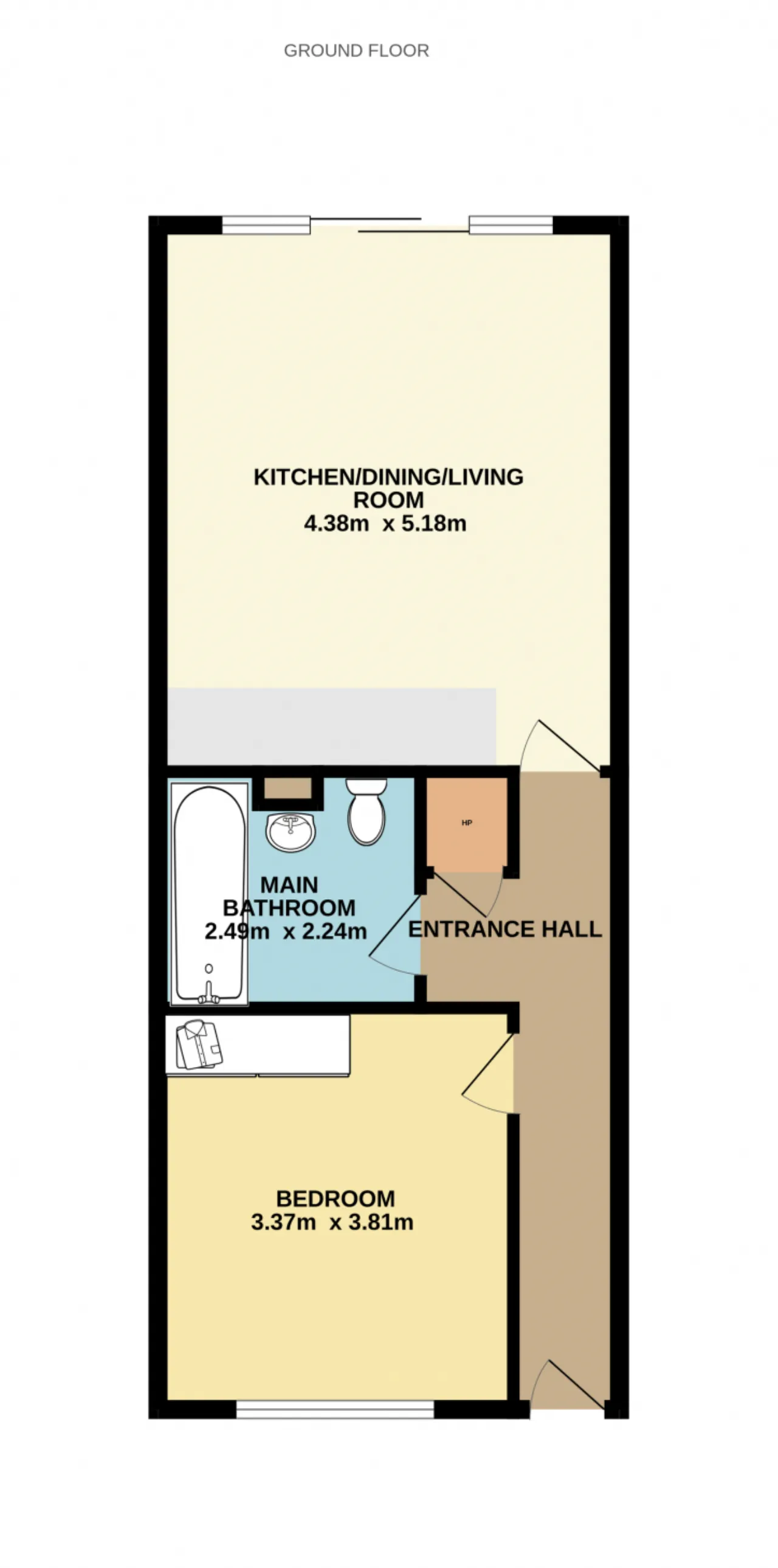 Kitchen/Dining/Living Room 5.18m x 4.38m Large and light filled open plan space with the benefit of both windows and sliding doors that lead to the south-facing patio area. The kitchen area is well-fitted with floor and eye-level units, a selection of integrated kitchen appliances, ceramic tiled flooring and a tiled splashback. The dining/living area is an open reception space. Laminate wood flooring runs throughout.