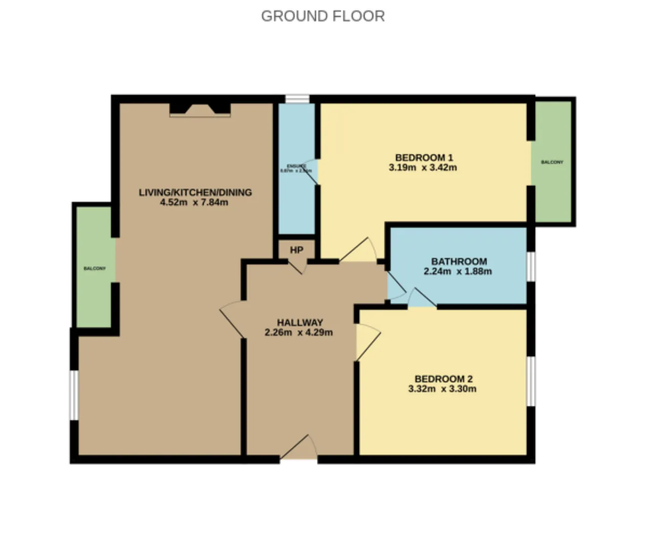 Bedroom 1 3.19m x 3.42m Bright and spacious double bedroom with laminate flooring. Access to a private balcony.