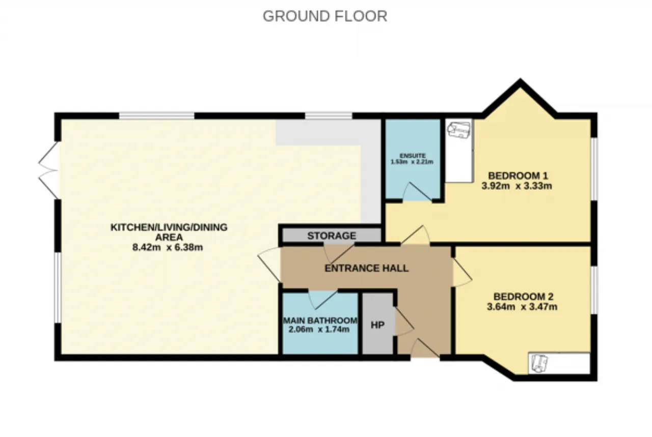 Bedroom 1 3.92m x 3.33m Spacious, dual aspect double bedroom with views of both the waterfront and the communal gardens. Benefits from carpeted flooring, built in wardrobes and an ensuite.