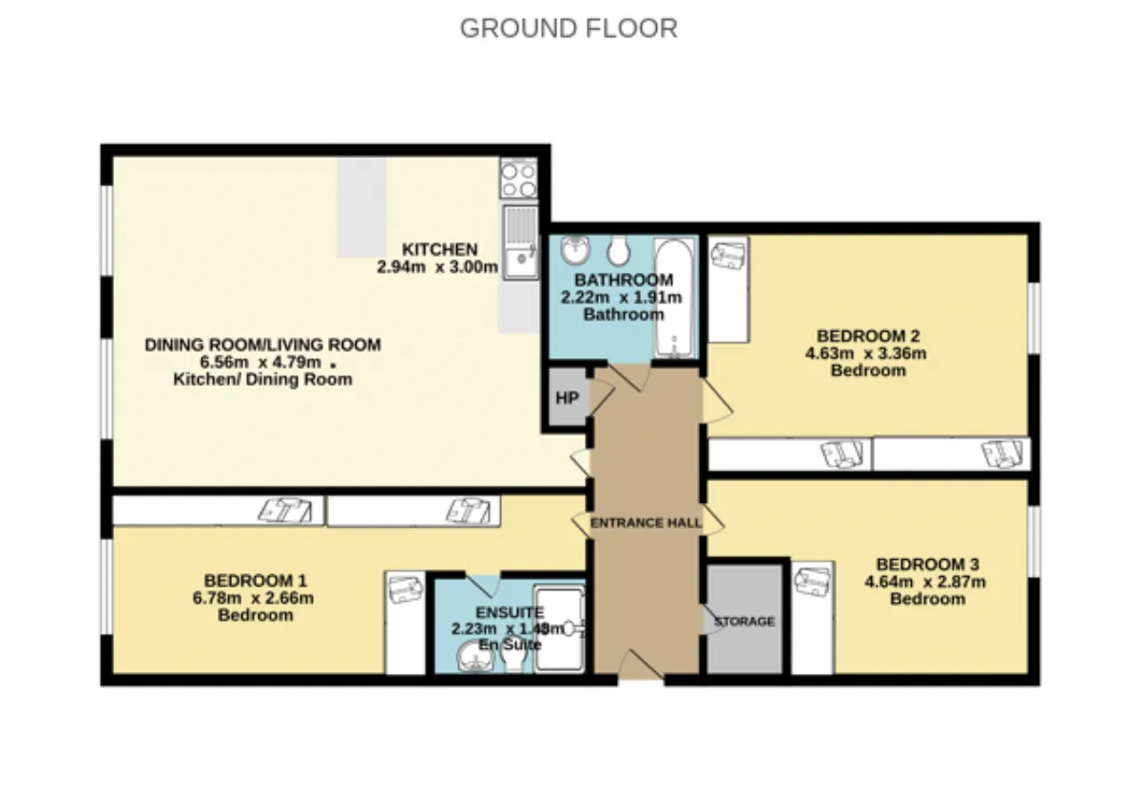 Bedroom 2 3.37 x 4.36 A fantastic-sized, double bedroom with solid oak flooring. Also has a bespoke, fitted wardrobe as well as a second, mirror-front, sliding wardrobe, for excellent storage space. Provides access to the private, west facing terrace to rear, which leads out to the well-maintained, communal gardens.