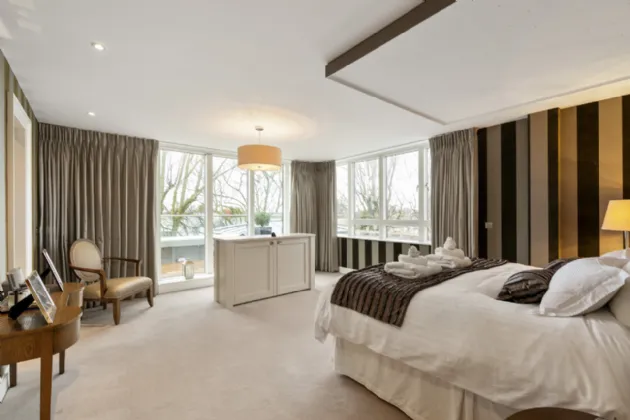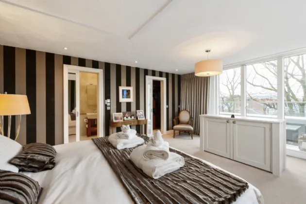 Walk-in Wardrobe: with bespoke wardrobes and recessed lights.