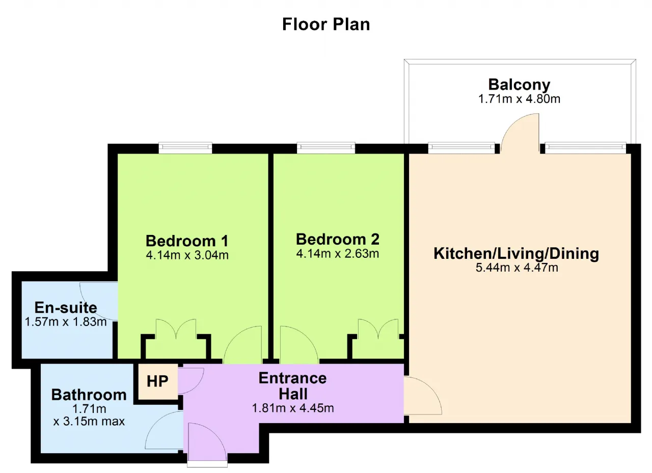 Living/Dining/Kitchen 5.44m x 4.47m Living/Dining: With laminate wood flooring and access to balcony. Kitchen: With floor and eye level units, sink, hob, oven, extractor fan, plumbed for washing machine and integrated fridge-freezer.