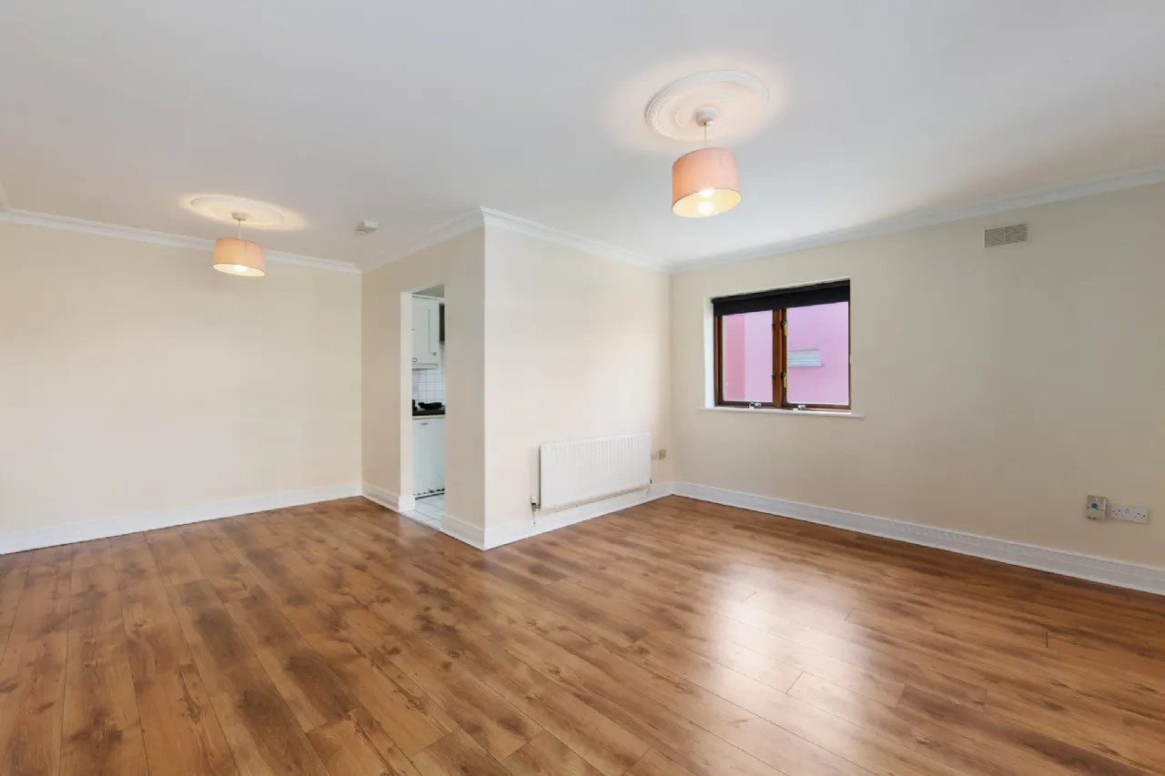 Living/Dining Room 5.89m x 4.72m Dual aspect room floor to ceiling window and door to Juliet balcony overlooking the front, window to side, ceiling coving, centre roses. Opening into;
