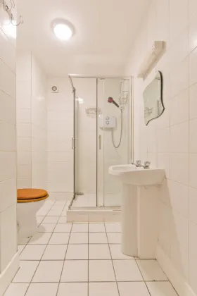 Bathroom 3.07m x 1.77m With fully tiled walls and floors, wc, wash hand basin, shower cubicle with Triton T90 sr electric shower and extractor fan