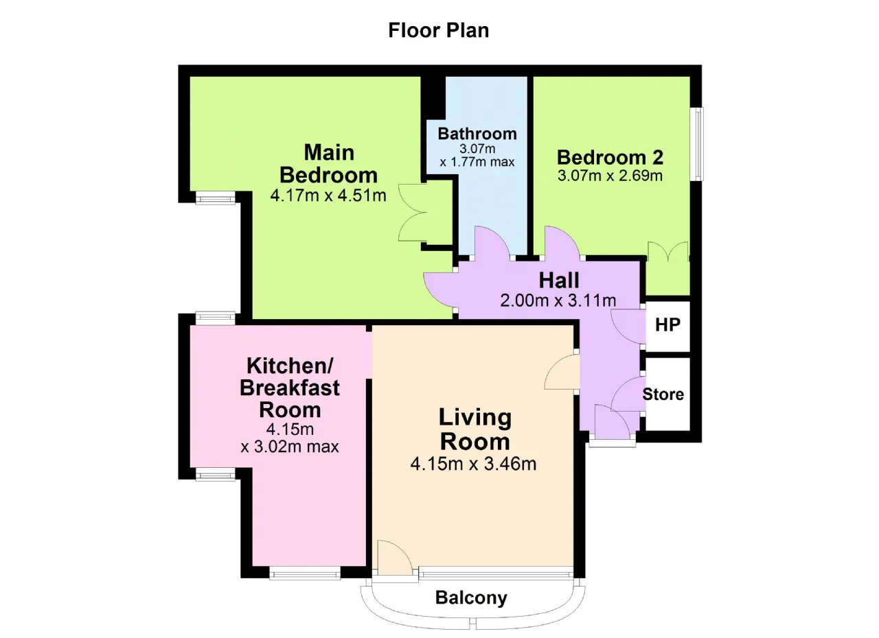 Bedroom 1 4.17m x 4.51m With floor to ceiling window, fitted wardrobes and TV point