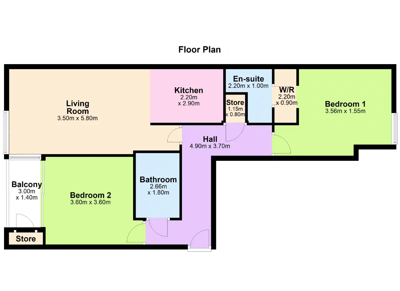 Bedroom 2: 3.60m x 3.60m double bedroom, laminate floor, built-in wardrobes, sliding door to balcony, speaker for surround sound.