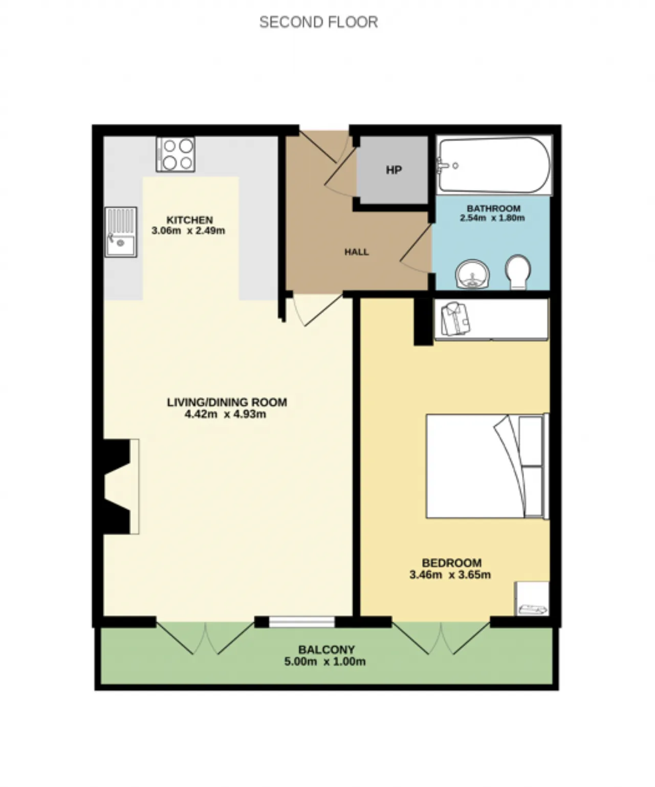 Bedroom 4.95m x 3.46m Large bright double bedroom with fully fitted wardrobes, door leading to balcony.