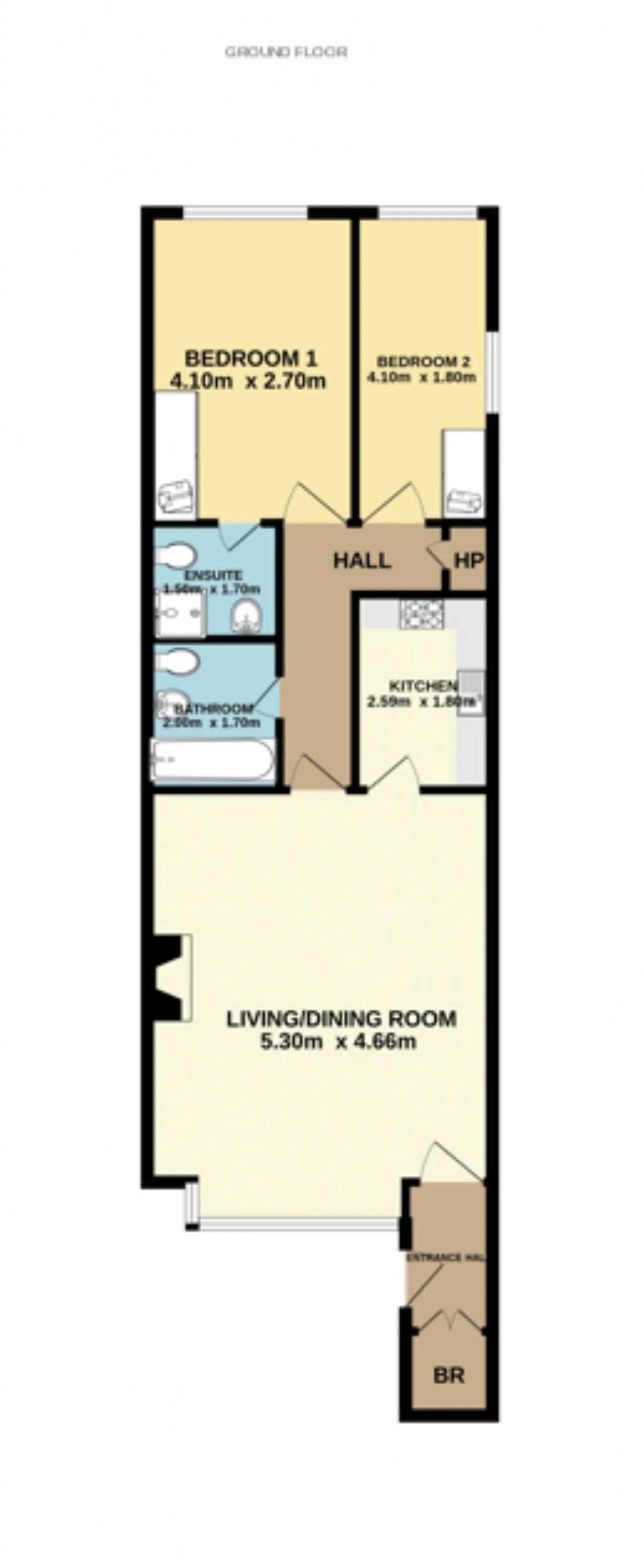 Entrance Hallway With own door access, on the ground floor, the entrance hallway is fit with stylish, laminate timber flooring with flows throughout the apartment. Holds a convenient storage press.