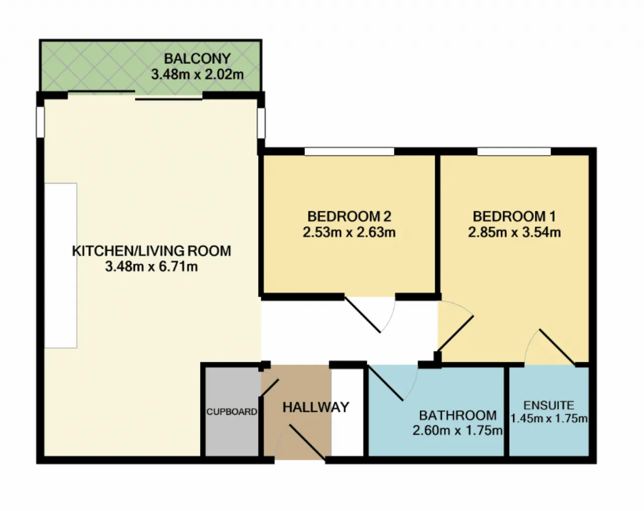 Accommodation briefly comprises; Open plan living and dining area with kitchen, two double bedrooms (primary ensuite), family bathroom, balcony and studio/home office.