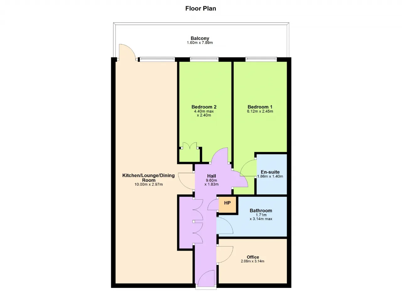Bedroom 1 6.12m x 2.45m carpet flooring, central light, overlooking the balcony, built-in double wardrobes. Door to: