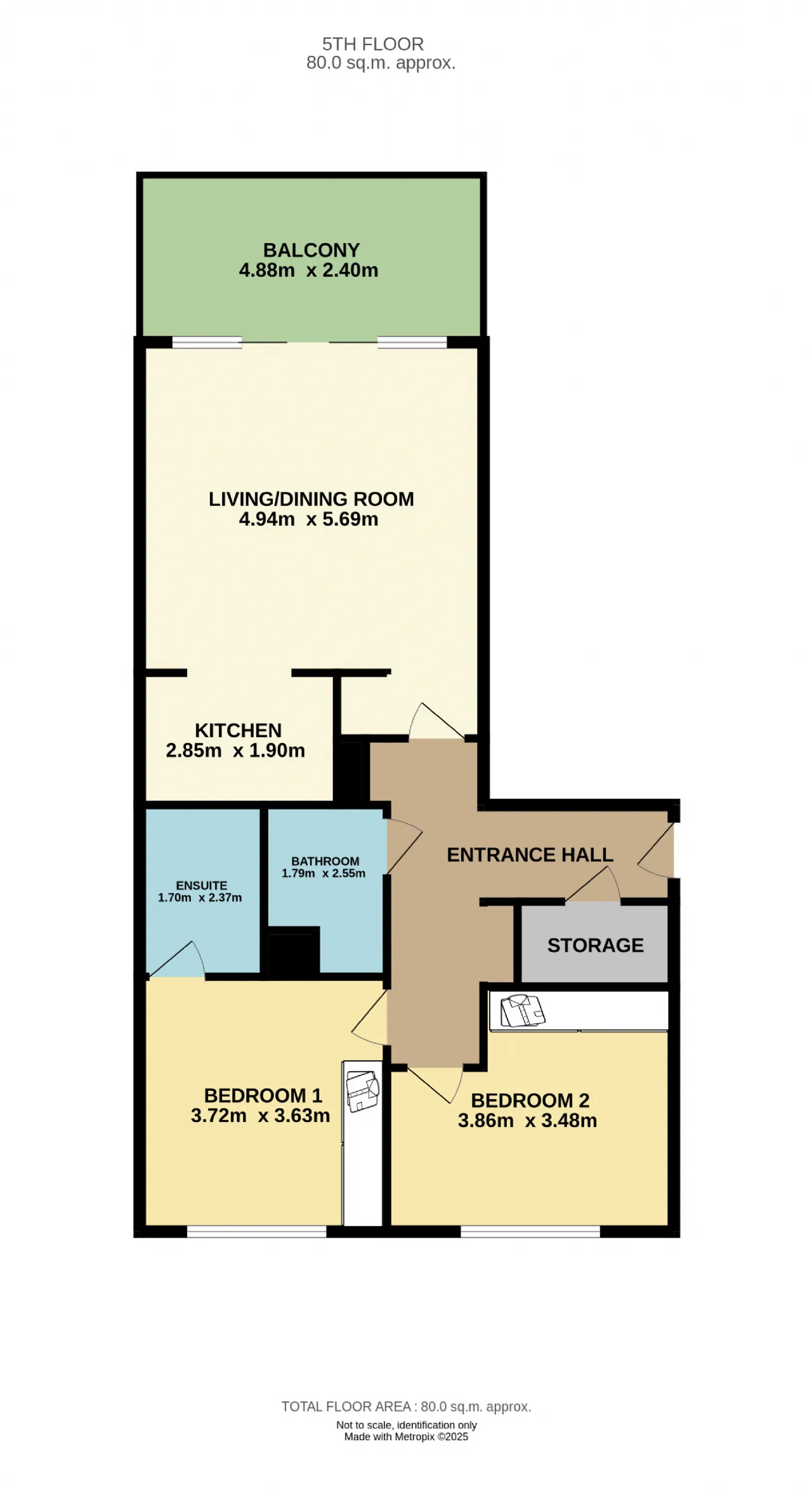 Bedroom 2 3.867m x 3.482m Second double bedroom of equal proportions, also complete with built-in sliderobe storage and carpet flooring.