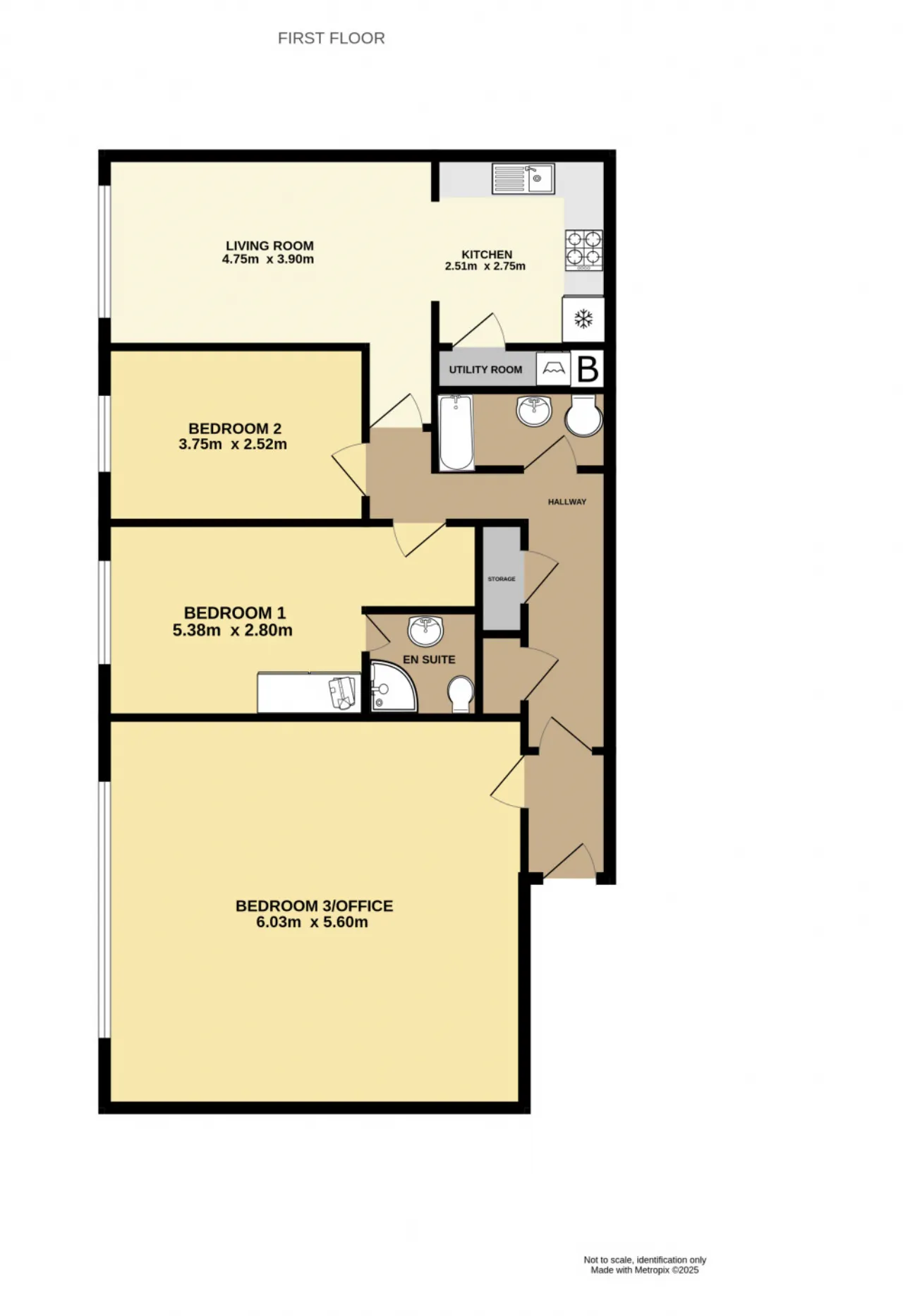 Bedroom 3 / Office 6.03 x 5.60 Sizable double bedroom / office with window to front aspect and laminate flooring.