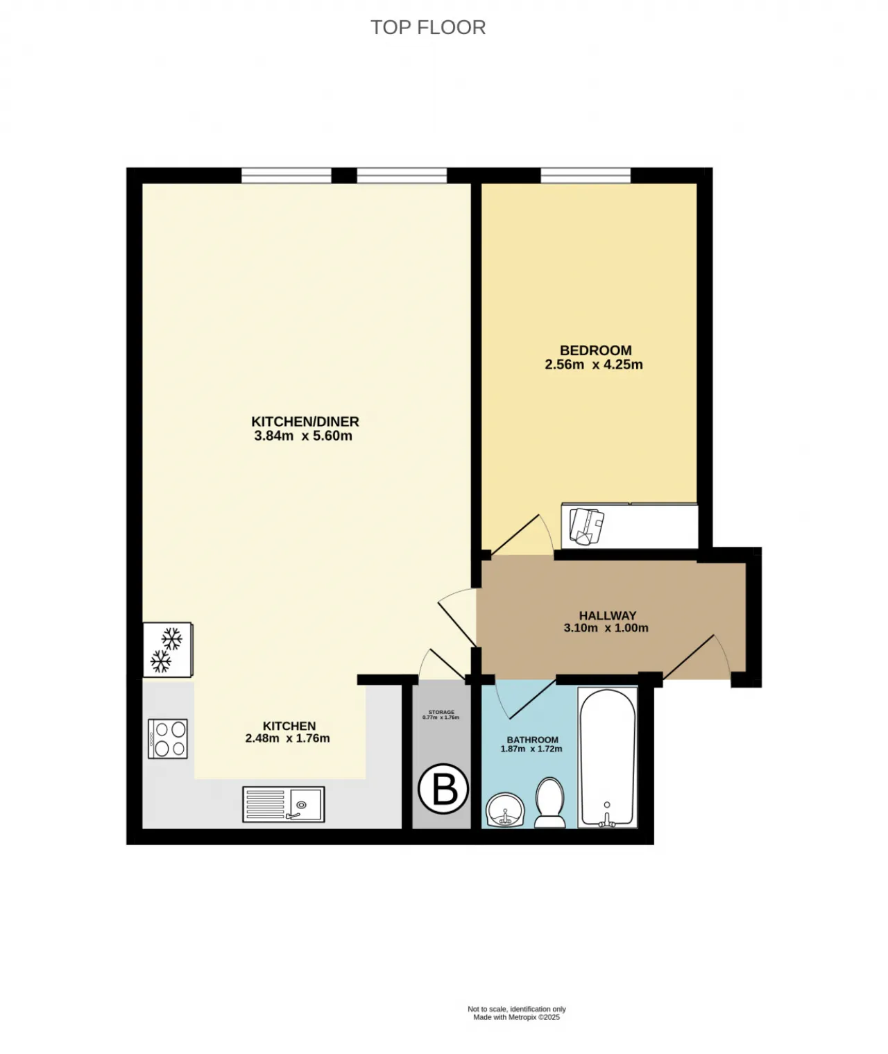 Bedroom 1 4.25m x 2.56m Sizable double bedroom with window to front aspect, built in storage, and laminate flooring