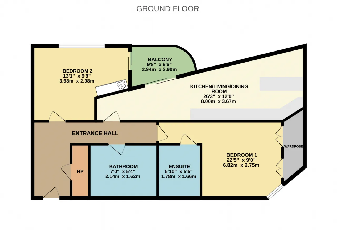 Bedroom 2 3.98m x 2.98m A spacious double bedroom with newly laid carpet flooring, a built-in wardrobe, and direct access to the balcony.
