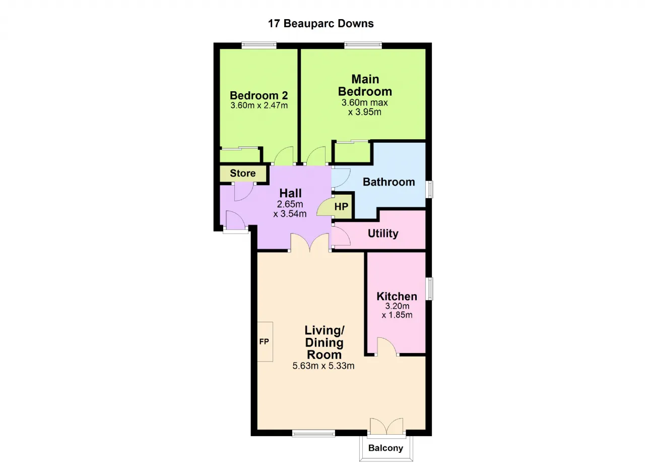 Bedroom 1 3.6, x 3.95m With ceiling coving, window overlooking communal grounds to the rear, sliding mirrored wardrobes.