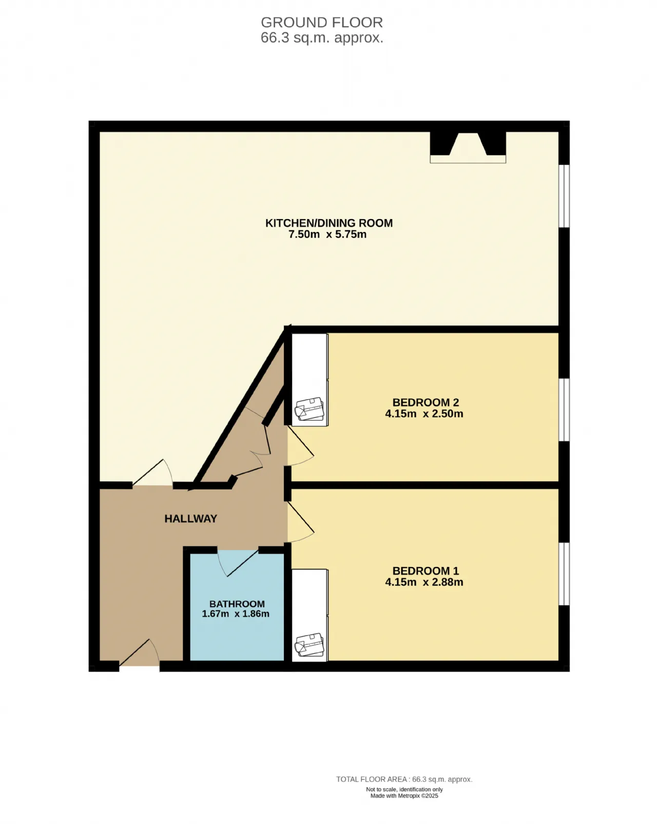Bedroom 2 Double room with fitted wardrobes and picture window overlooking the communal gardens.