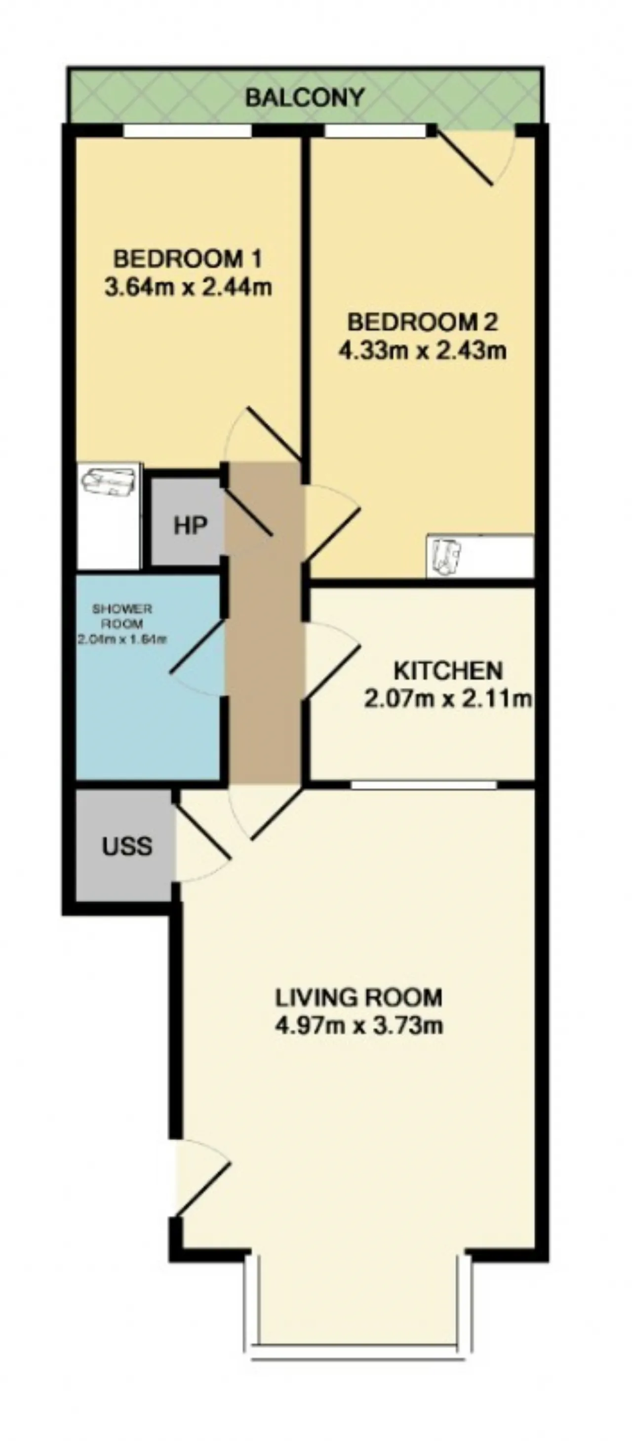 Bedroom 2 4.33m 2.43m Double room, located to the rear with a built-in wardrobe and eco electric radiator.
