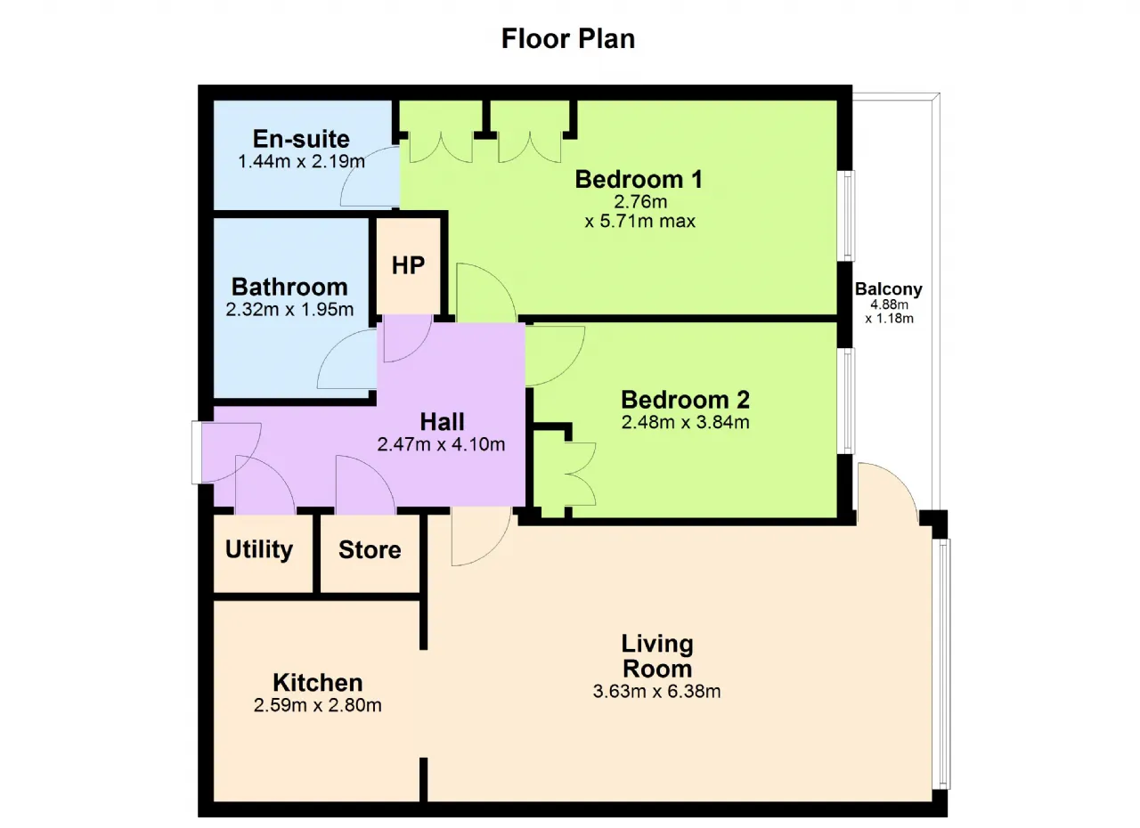 Main Bedroom 2.76m x 5.71m Large double bedroom with built in wardrobe and door to