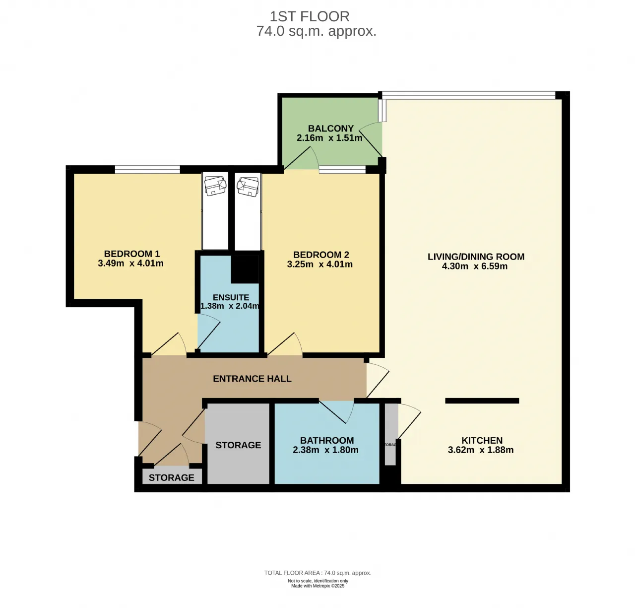 Bedroom 1 3.486m x 4.001m Main double bedroom with built-in wardrobes and an ensuite shower room.