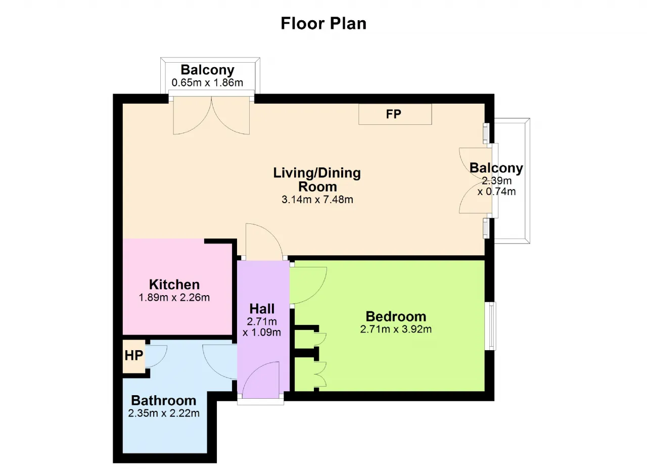 Living/Dining Room: superb spacious reception room with attractive Lemartine fireplace and open fire, tiled hearth, ceiling coving, access to 2 balconies.