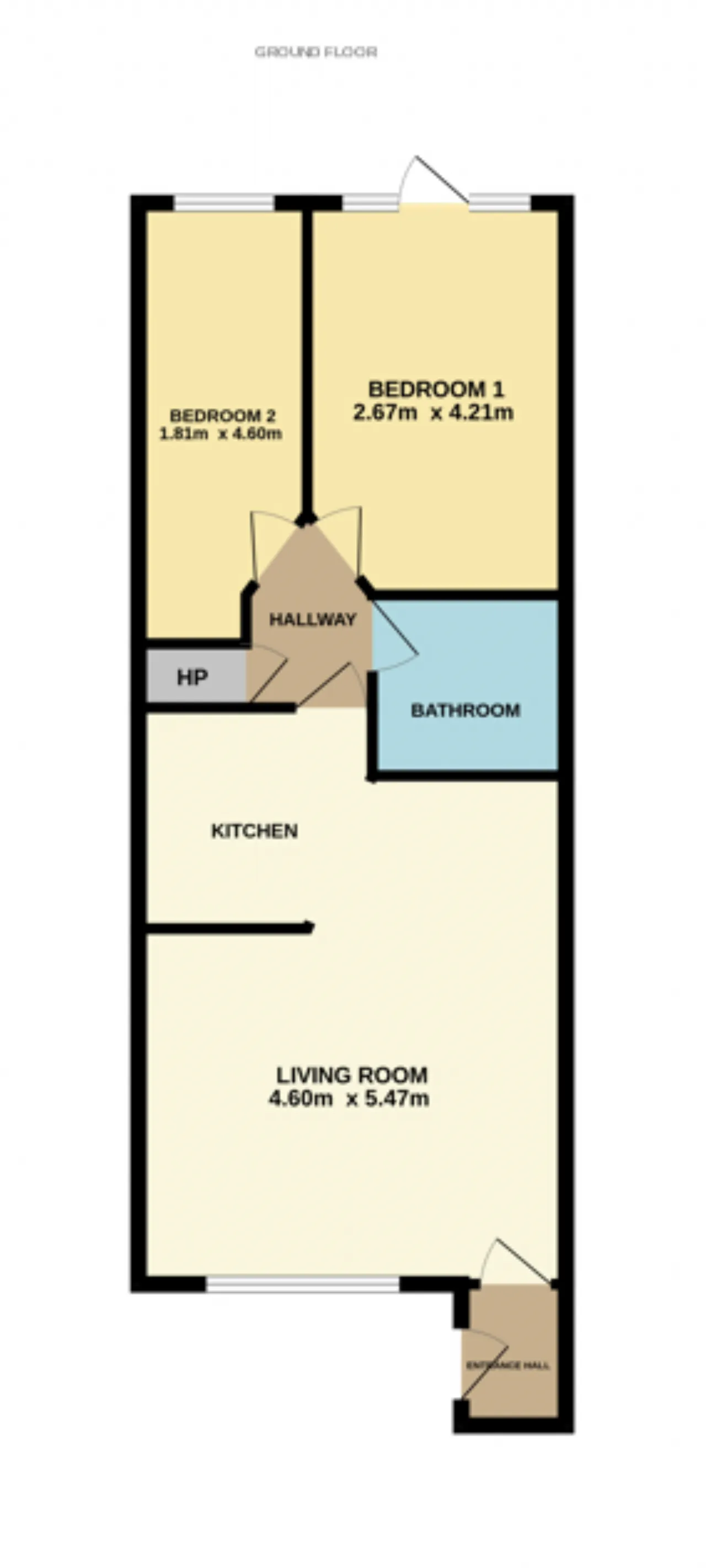 Bedroom 1 2.67x m 4.21m Wood flooring with access to the rear garden.
