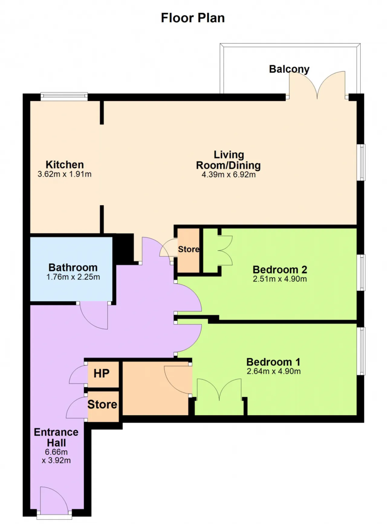 Bedroom 2 2.51m x 4.90m Double bedroom with fitted wardrobes & timber flooring.