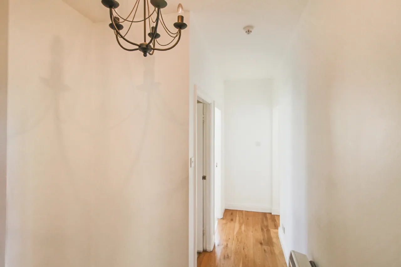 Bedroom 2 10.50m2 Wood flooring, built-in wardrobes, Dimplex electric heater, wall mirror, curtain pole & drapes x2.