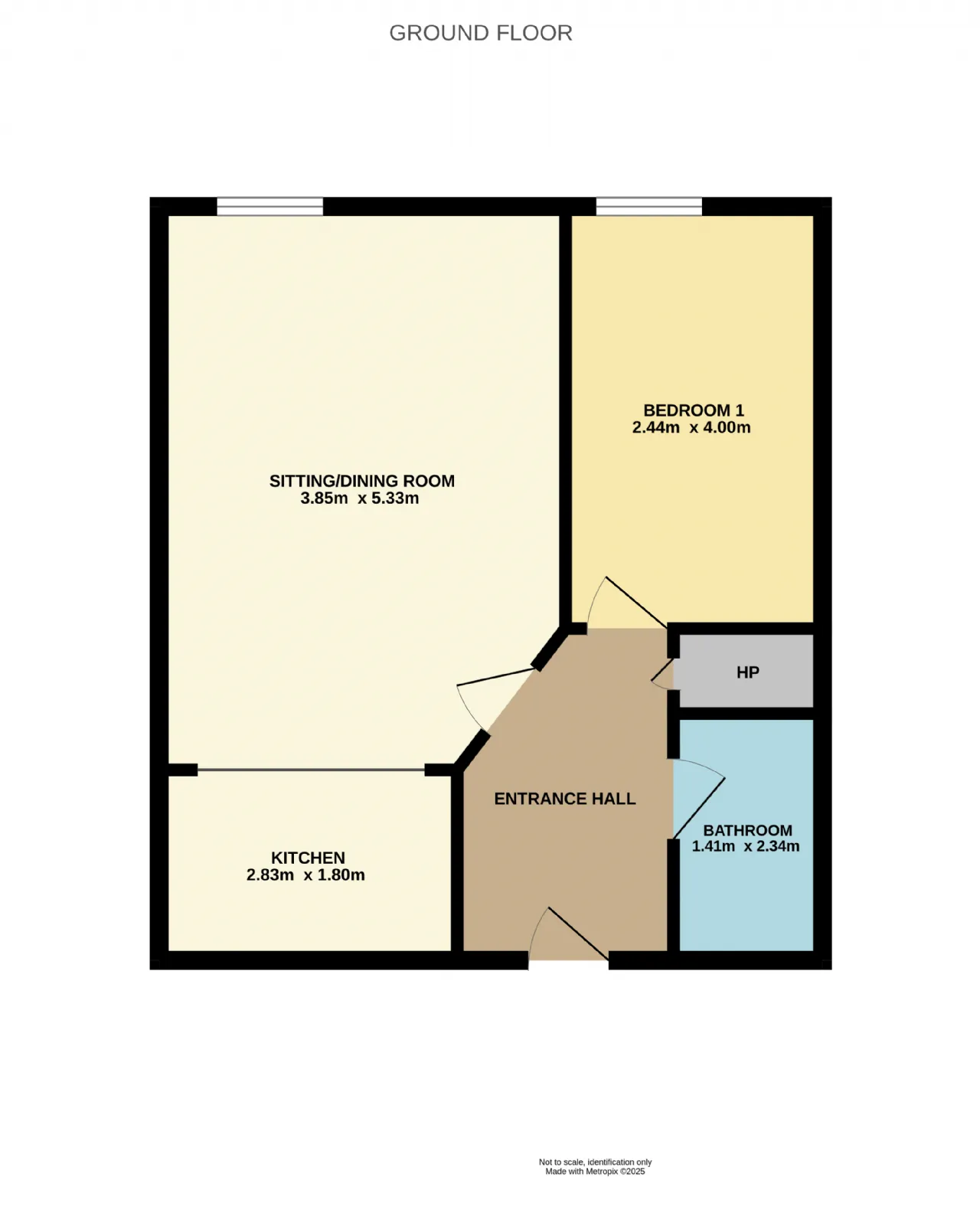 Entering the hall door there is a wide entrance hall with the bathroom on the immediate right, with tiled walls and floor and white suite sanitary units. The bedroom is a spacious double, with wood flooring and a fitted wardrobe. Entering the living room you are greeted by wood floors in this generous reception space which opens to the kitchen, another generous space with wall and floor kitchen units and work surfaces, as well as integrated appliances, including an electric oven, hob and extractor, washing machine and dishwasher and fridge freezer.