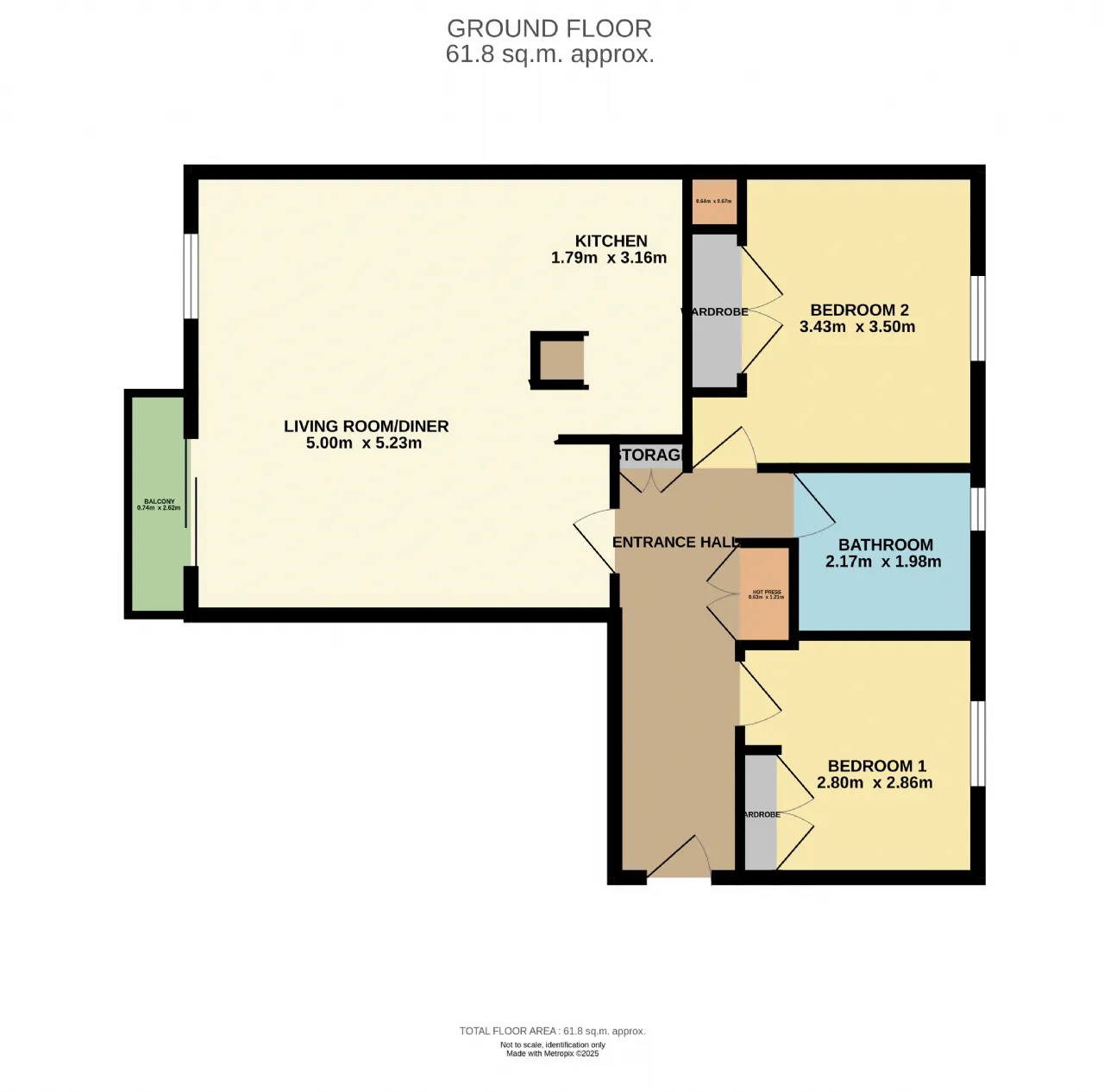 Accommodation: Entrance Hall, Open Plan Kitchen/Living/Dining, 2 Double Bedrooms, Main Bathroom.