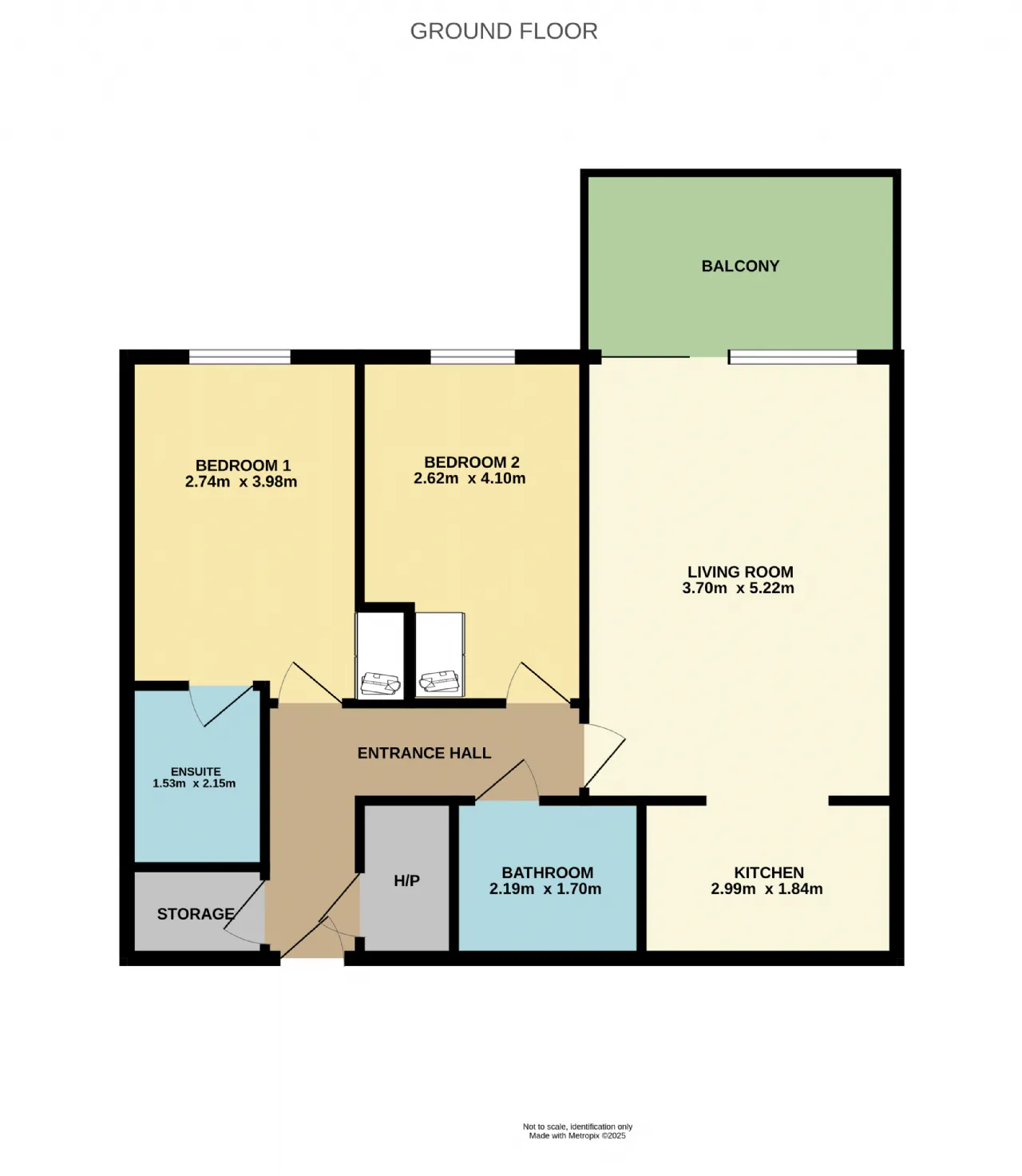 Accommodation: Entrance hall, living room, kitchen, two bedrooms, ensuite shower room, bathroom.