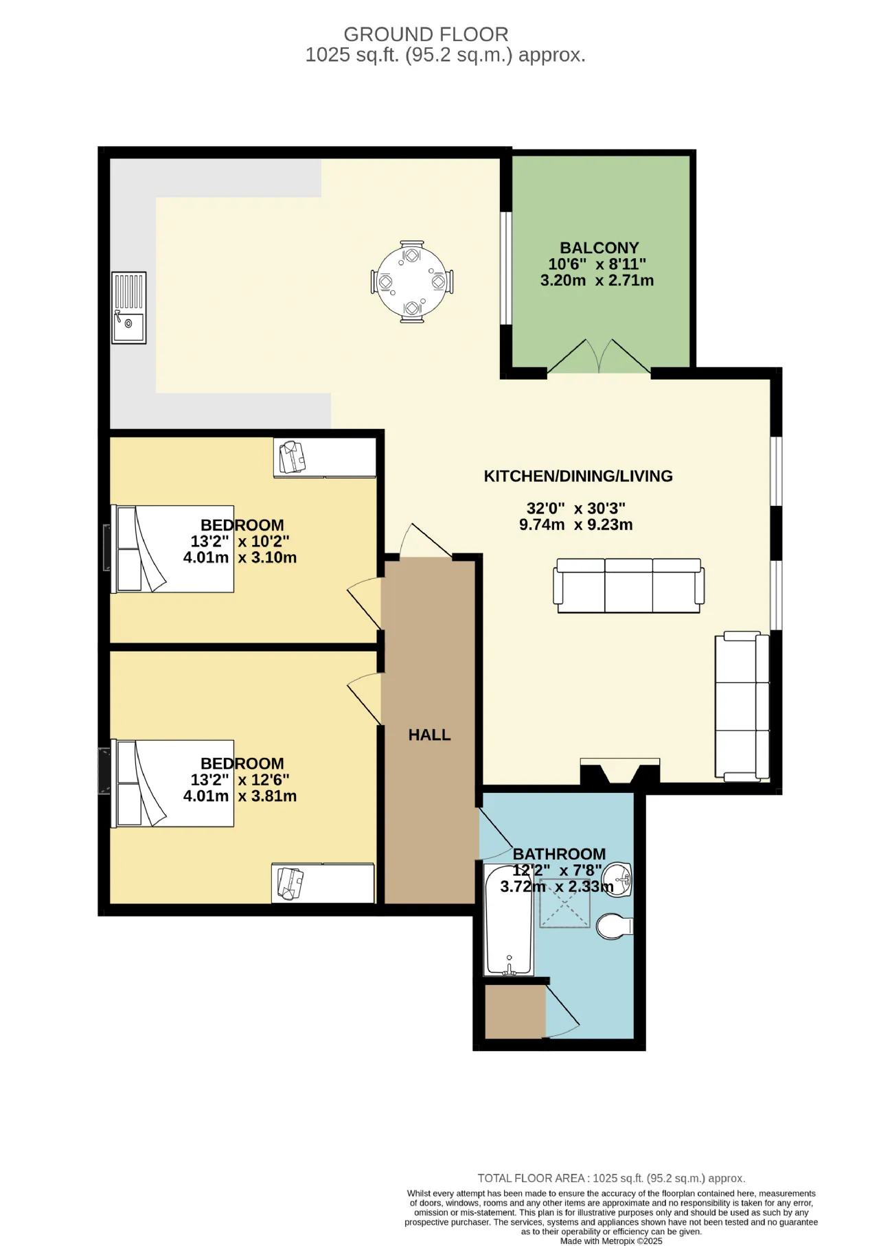The accommodation briefly comprises of an entrance hall, impressive fully fitted kitchen with fitted appliances. Large Living room with double French doors leading to the private balcony. Two large double bedrooms with built in wardrobes and main bathroom. Approx 92 sq.mtrs/1000 sq.ft