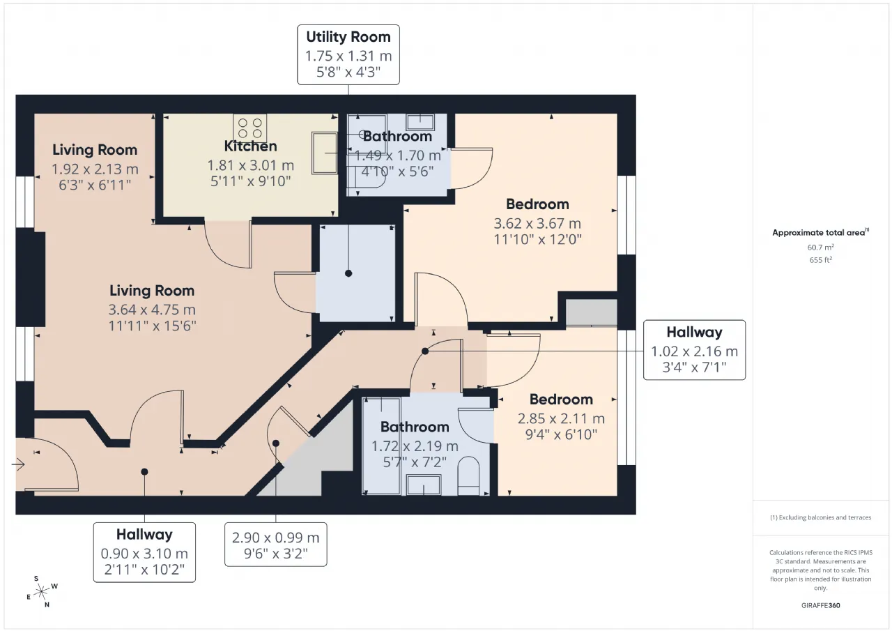 Accommodation comprises entrance hall, sitting room, fully fitted kitchen with tiled floor and integrated appliances including fridge freezer, washing machine, oven and hob. Also included in the accommodation is two bedrooms with built in storage space, both bedrooms having an en-suite.