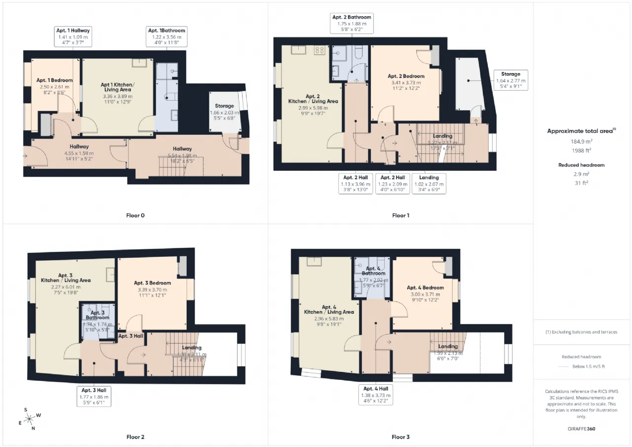 'No. 6' is a terraced two-bay, four storey styled property constructed in c. 1800 and measuring at c. 231 sq. m. The building was converted into 4x 1-bedroom apartments across 4x floors.