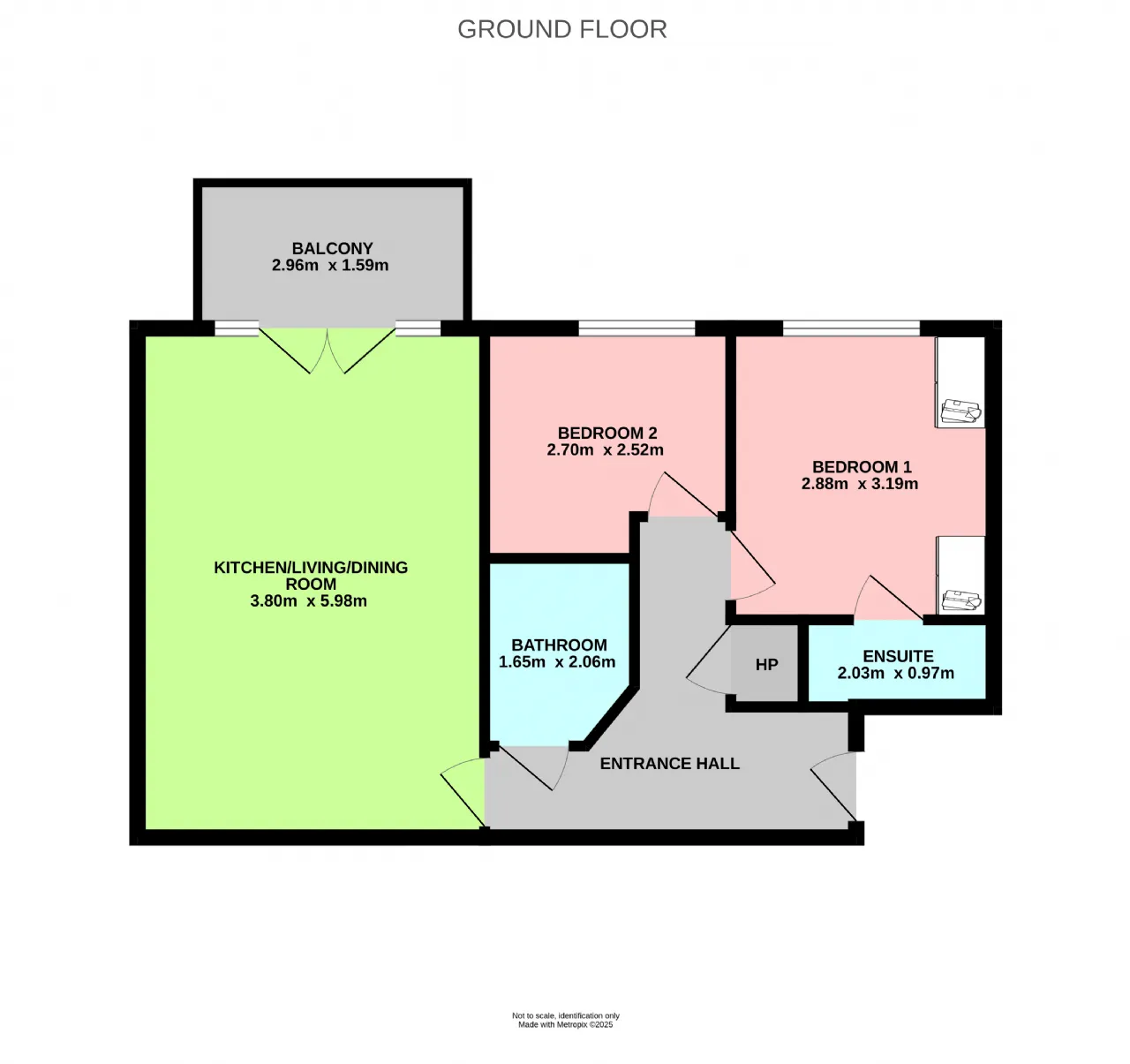 Bedroom 1 2.88m x 3.19m Spacious principal double room with built-in wardrobes and views out to Convent Court. TV point. Leads to: