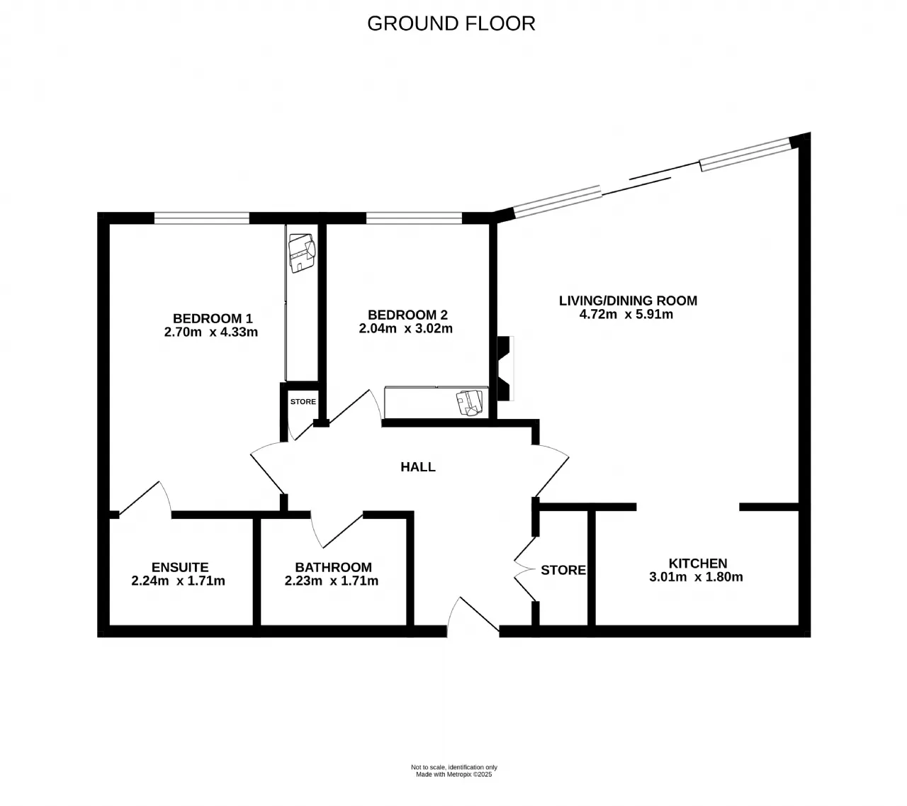 Bedroom 1 2.70m x 4.33m Spacious principal double bedroom overlooking communal garden with built-in wardrobes. Recessed lighting. Leading to;