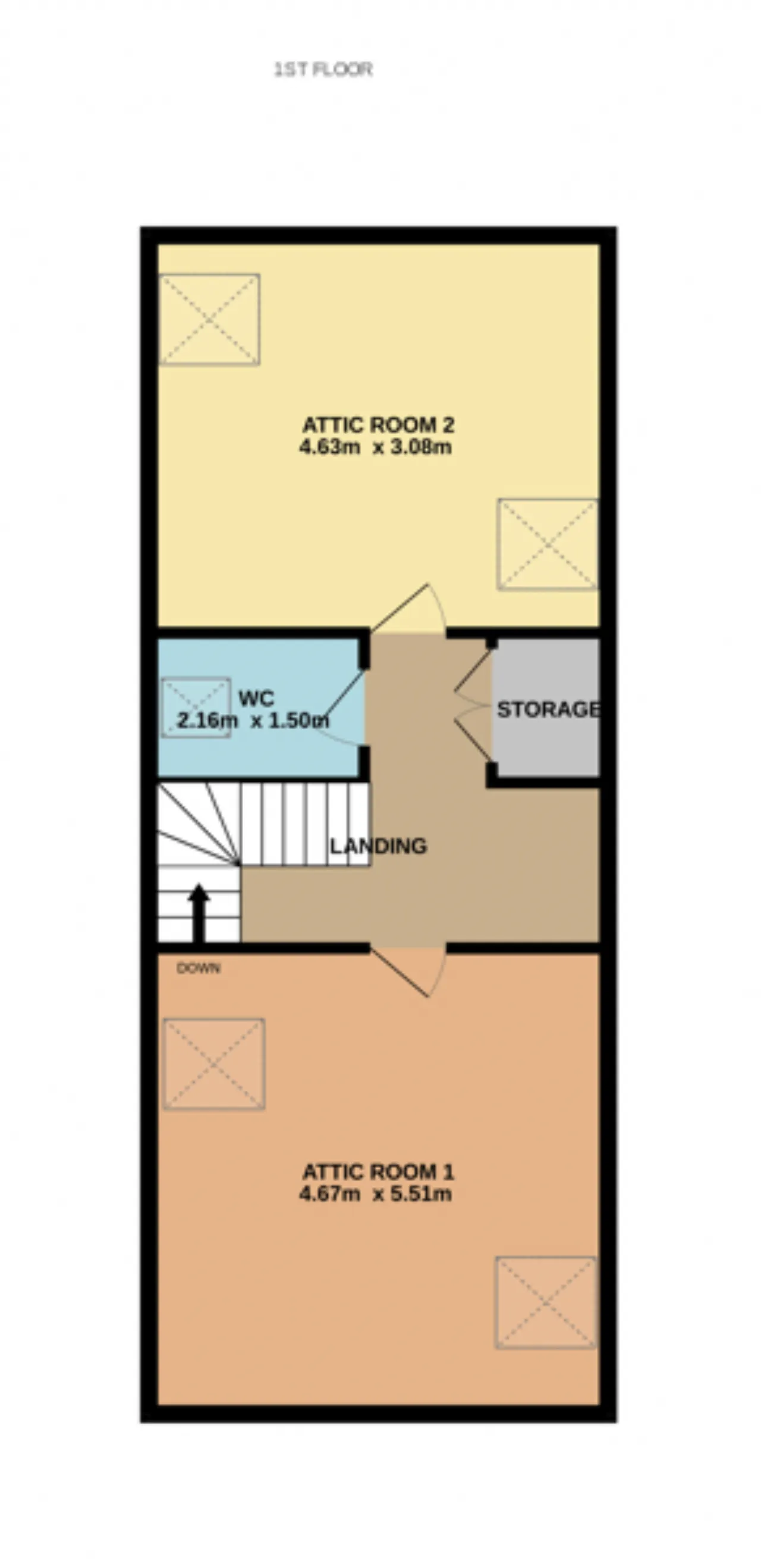 Attic Room 2 4.63m x 3.08m This is a spacious room located to the rear of the home with large Velux windows bringing in natural sunlight.