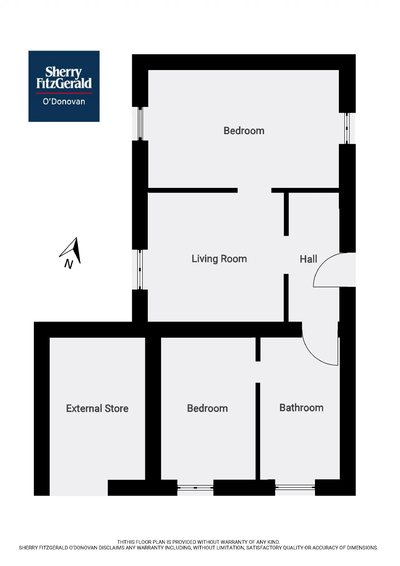 Internally, the property consists of an entrance hallway, a living room, two bedrooms and one bathroom. Externally, there are two concrete sheds for storage and a spacious garden with a driveway for parking.