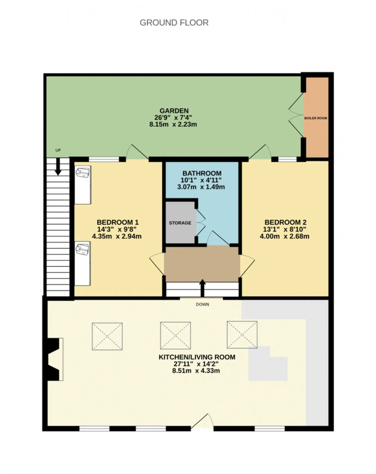 Bedroom 2 4.00m x 2.68m Another inviting bedroom, also benefiting from timber floorboards and a patio door leads to the outdoor space.