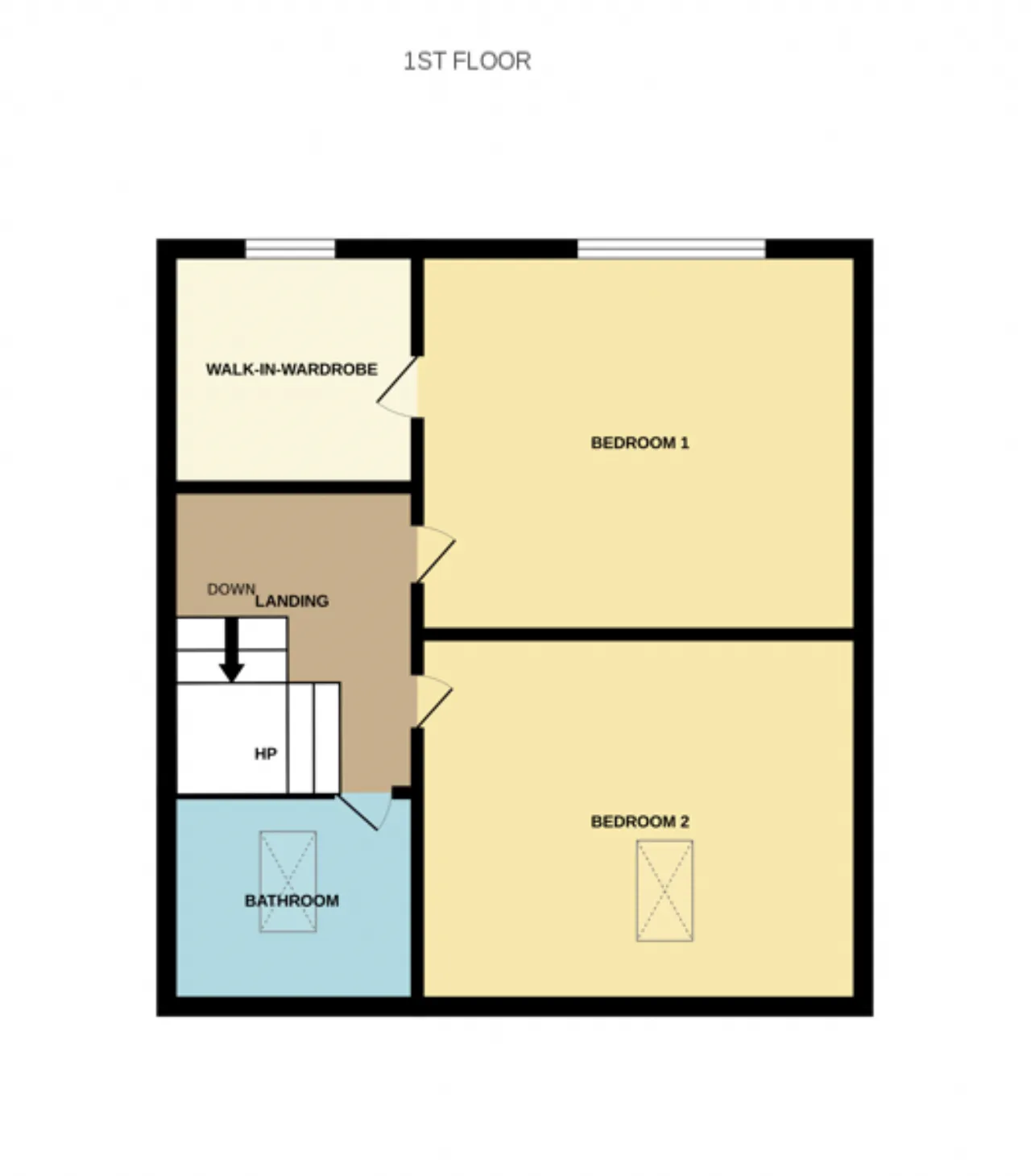 Upstairs there are two bedrooms, with fully fitted walk in wardrobe off main bedroom and family bathroom.