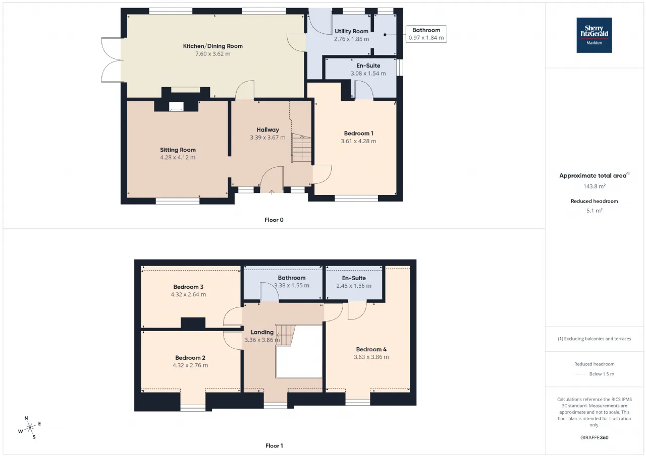 Bedroom 1 3.61m x 4.28m Front aspect window - En-Suite: 3.08m x 1.54 - Side access window