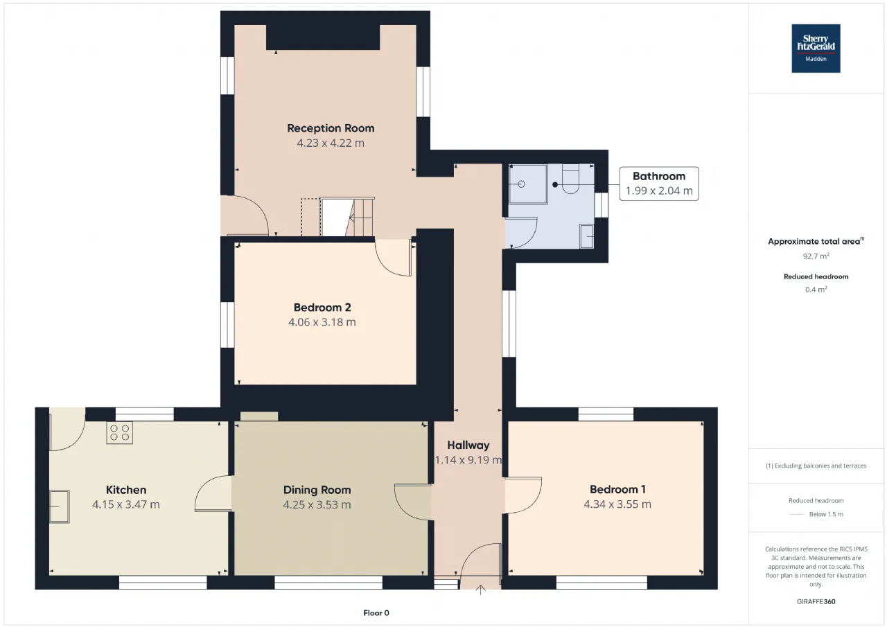 Reception Room 4.23m x 4.22m Dual aspect windows, door to rear, brick fireplace, carpet and wooden flooring