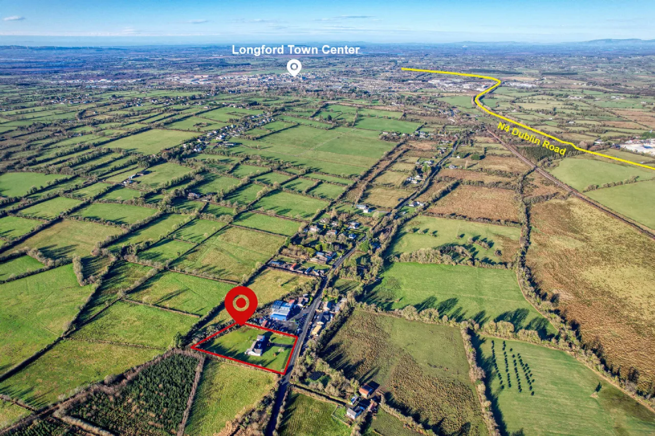 The bungalow is situated along the Ardagh Road just c. 4 km from Longford Town center and just 2 km from the N4 Dublin - Sligo Road. The area is rural in nature but with a number of one off houses in the area.