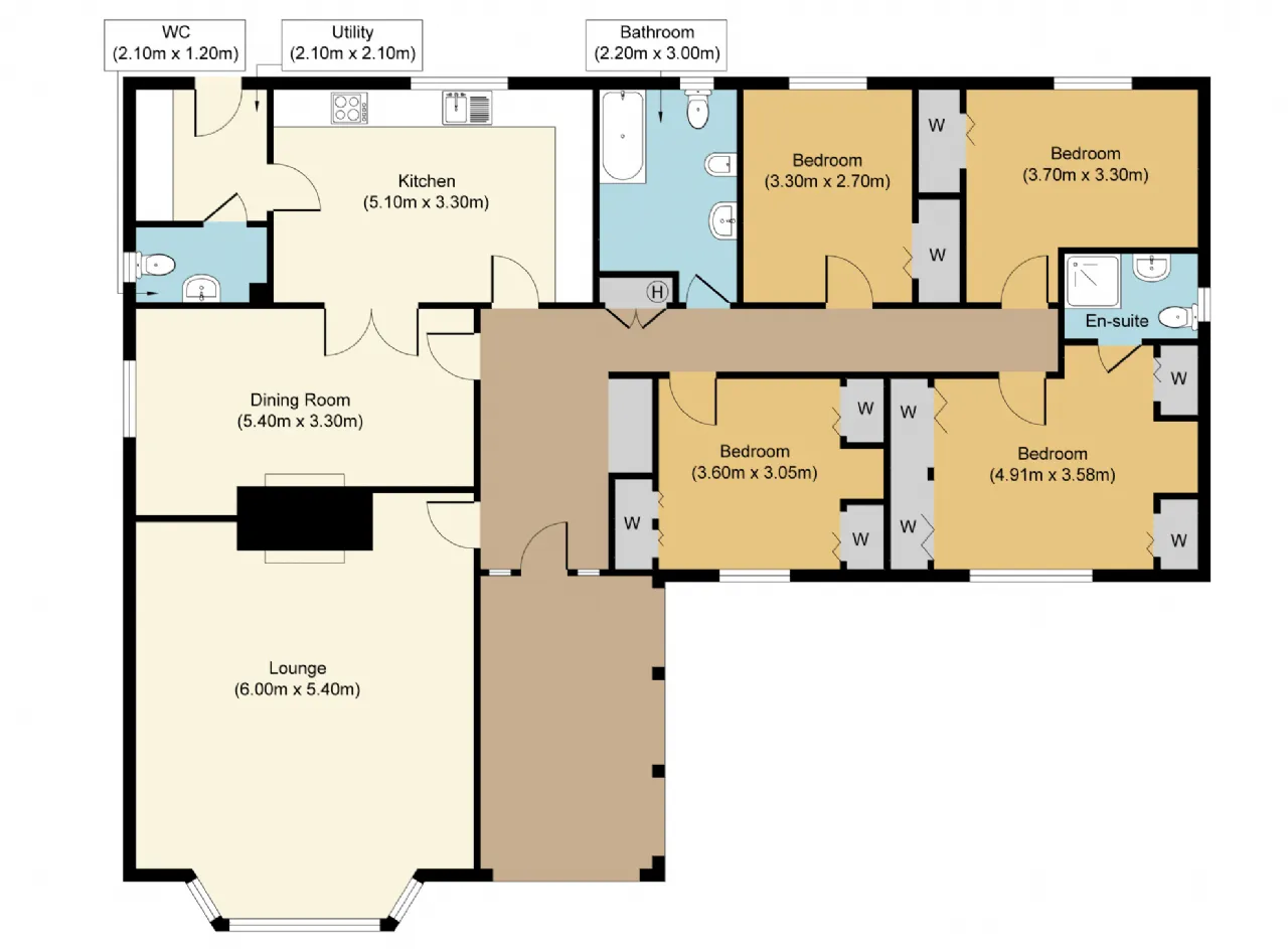 All 4 bedrooms are double sized with built in wardrobes. The main bedroom is ensuite. There is also a fully tiled family bathroom serving the other three bedrooms.