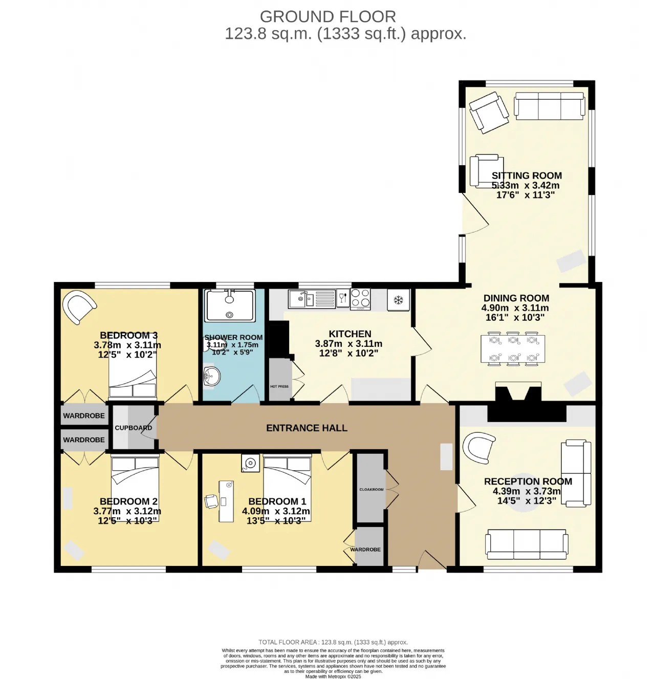 TOTAL FLOOR AREA: 123.8 sq.m. / 1,333 sq.ft. approx.