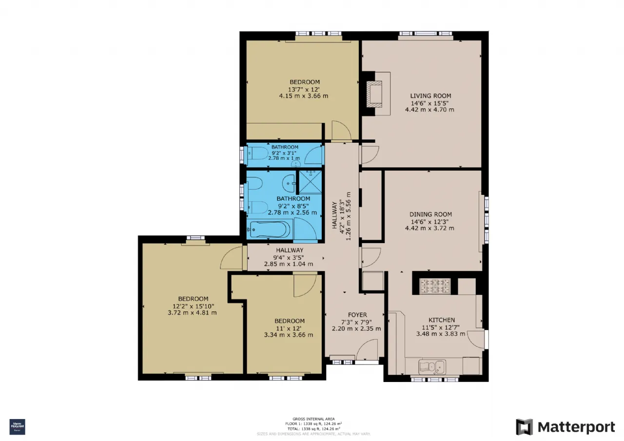 124.26 square metres / 1,338 square feet.