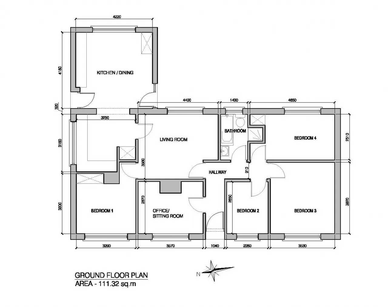 Built in approx. 1971 and extended over the years, accommodation extends to approx. 1,194 sq. ft. / 111 sq.m and includes and entrance hall, a sitting room, a living room, an extended kitchen come dining room, four bedrooms and a main bathroom.