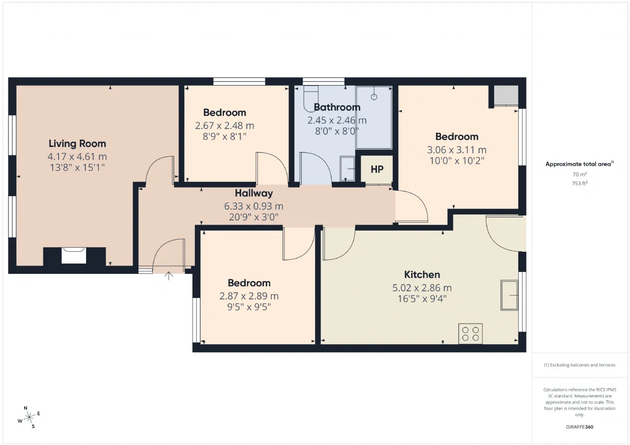 The Hallway leads to a single bedroom to the left and a large double bedroom with built in wardrobe space on the right off the hallway.