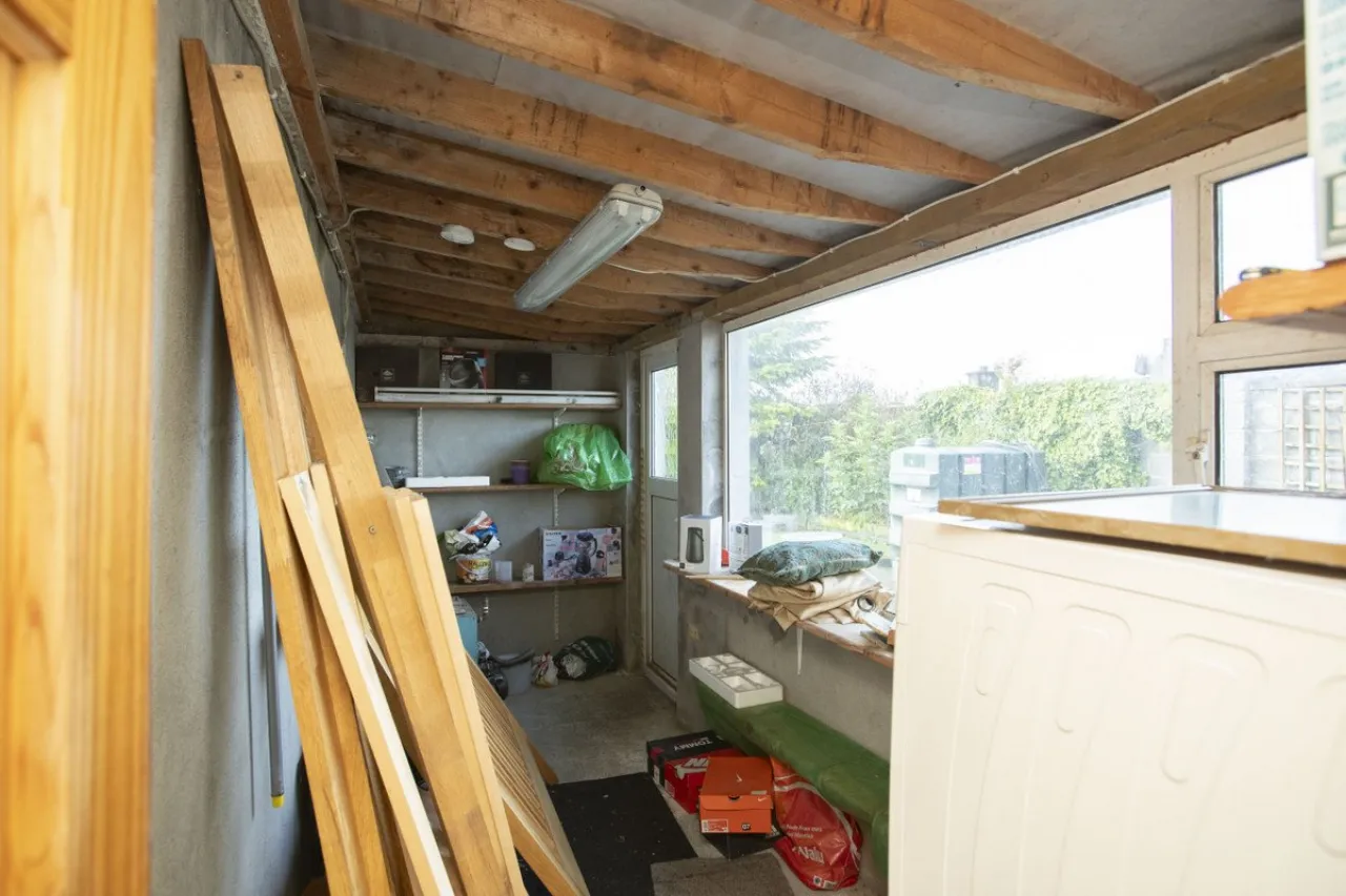 The accommodation consists of an entrance hall with semi-solid wood floors. Fully fitted kitchen with ample storage space, perfect for all your culinary needs. Generously sized sitting room with lino flooring and a solid fuel stove with a brick surround, ideal for cozy gatherings.