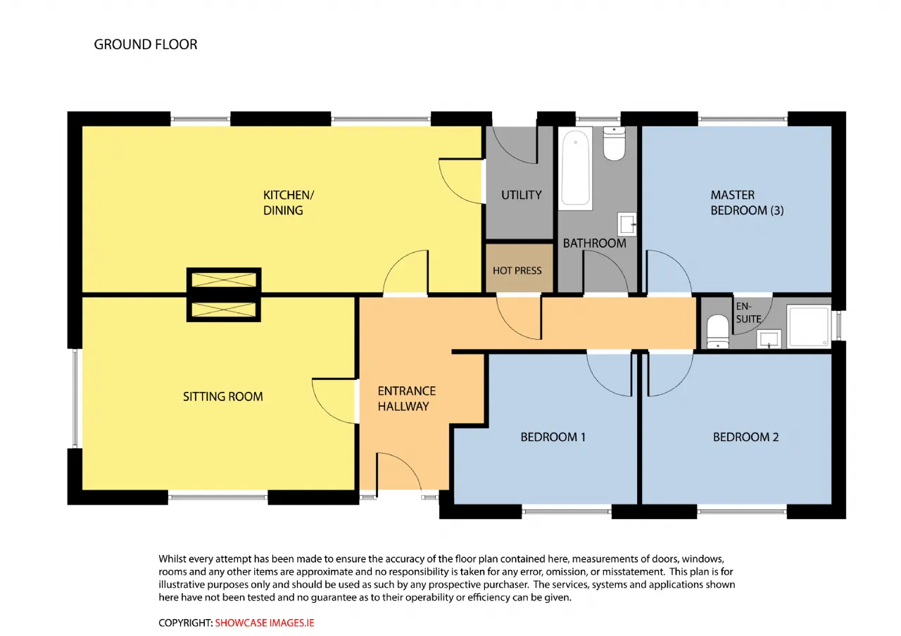 The accommodation extends to 112.1 sq m (approx.) and comprises of entrance hallway, large family kitchen/dining room, sitting room, three bedrooms, one with ensuite and a family bathroom.