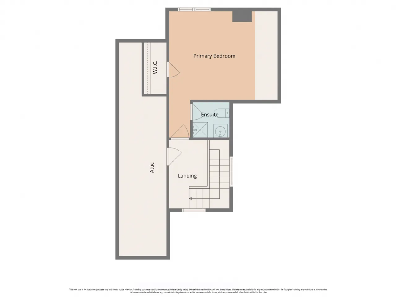 Landing 2.88m x 1.7 Bright and spacious thanks to a well placed window, benefits from a door which accesses storage to the eves.